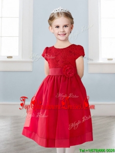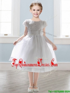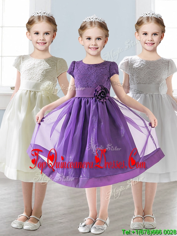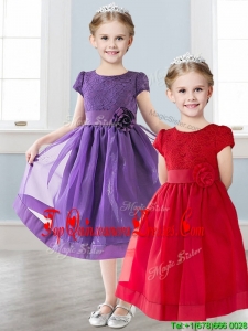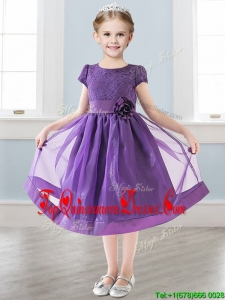 Wonderful Scoop Short Sleeves New Arrival Kid Pageant Dresses with Appliques and Lace