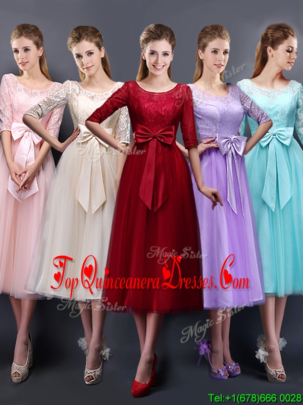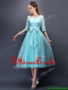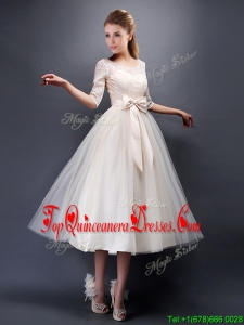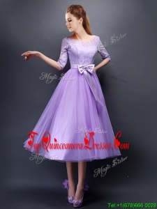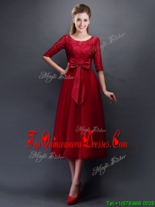 Wonderful See Through Scoop Half Sleeves Quinceanera Dama Dress with Bowknot