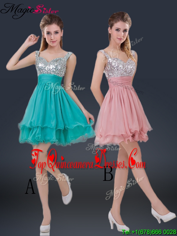 Wonderful Short Straps Paillette Fashionable Damas Dresses for Summer