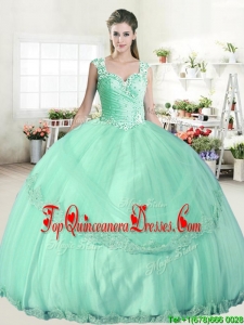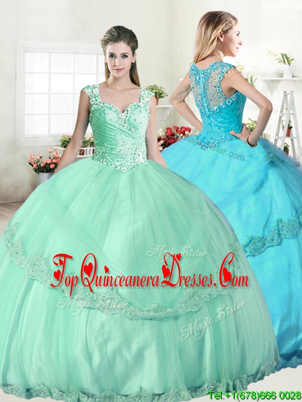 Wonderful Straps Apple Green Quinceanera Dress with Beading and Appliques