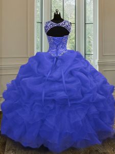 Wonderful Straps Straps Floor Length Zipper Sweet 16 Dresses Purple and In for Military Ball and Sweet 16 and Quinceanera with Beading and Ruffles