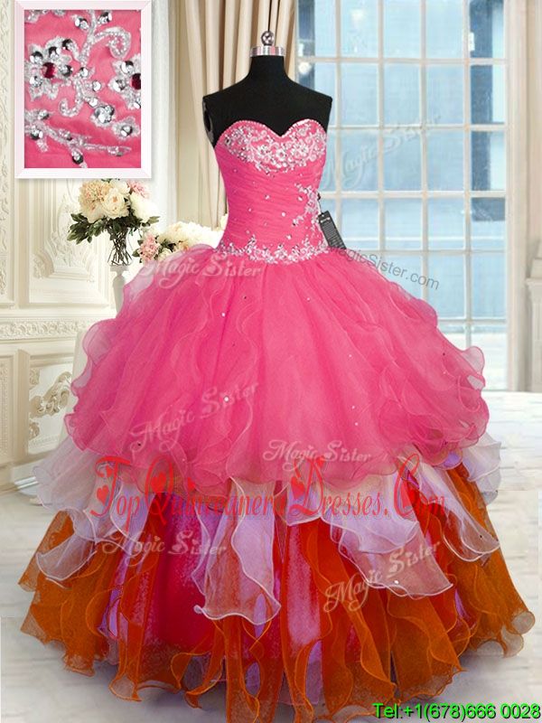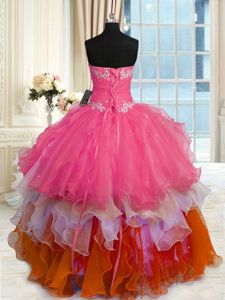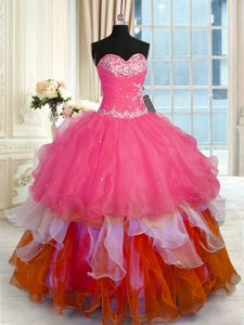 Wonderful Sweetheart Sleeveless Organza Quinceanera Dress Beading and Ruffles Lace Up