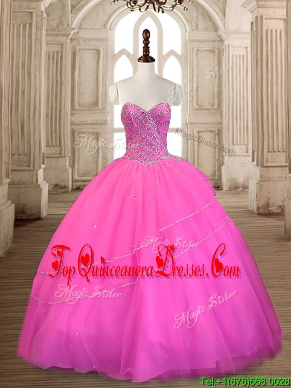 Wonderful Tulle Hot Pink Sweet 16 Dress with Beading