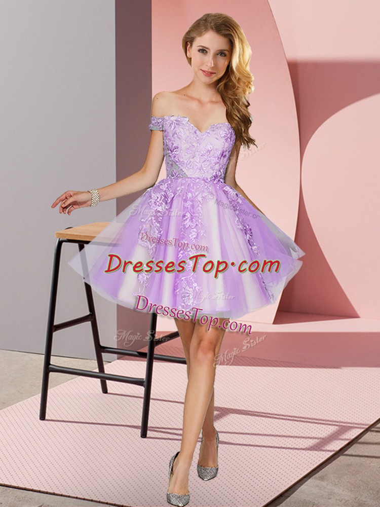 Wonderful Tulle Off The Shoulder Sleeveless Zipper Appliques Court Dresses for Sweet 16 in Lavender