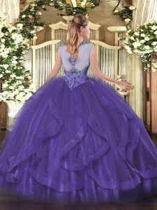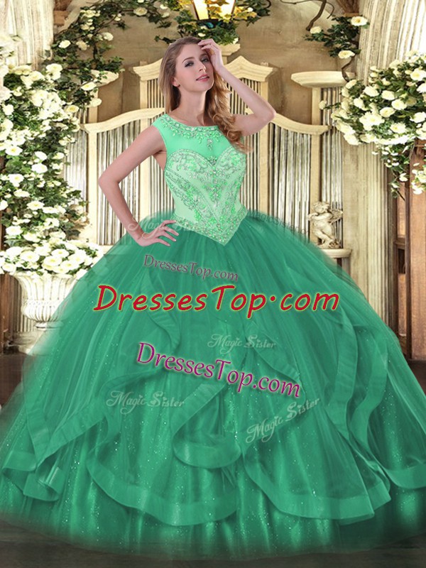 Wonderful Turquoise Scoop Lace Up Beading and Ruffles Quinceanera Dresses Sleeveless
