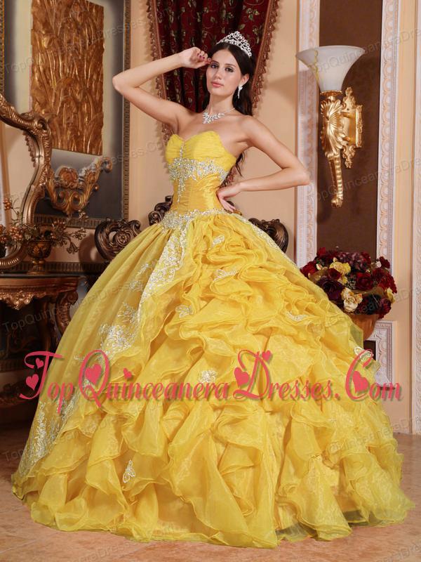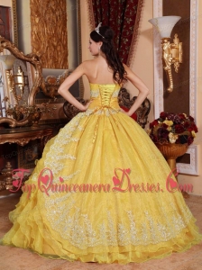 Yellow Ball Gown Sweetheart Floor-length Organza Beading Vestidos de Quinceanera