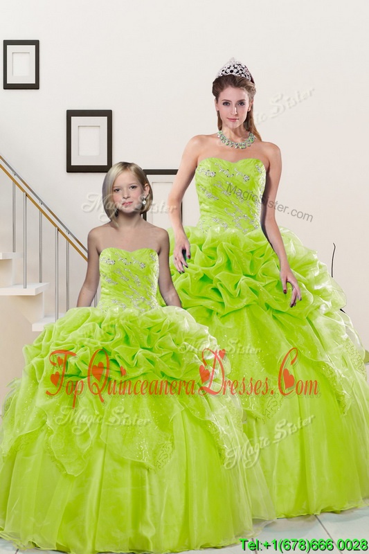 Yellow Green 15 Quinceanera Dress Military Ball and Sweet 16 and Quinceanera and For with Beading and Pick Ups Sweetheart Sleeveless Lace Up