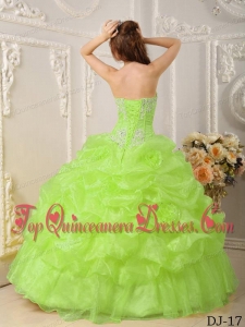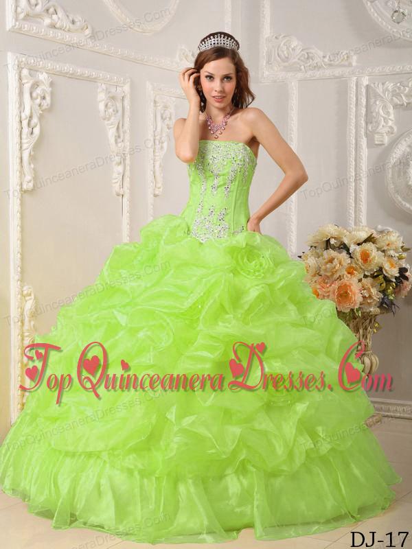 Yellow Green Ball Gown Strapless Floor-length Organza Beading Cheap Quinceanera Dress