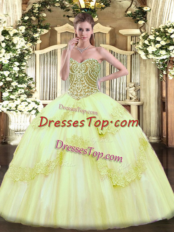 Yellow Green Ball Gowns Beading and Appliques Sweet 16 Quinceanera Dress Lace Up Tulle Sleeveless Floor Length