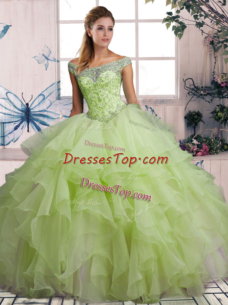 Yellow Green Ball Gowns Beading and Ruffles Sweet 16 Dress Lace Up Organza Sleeveless Floor Length