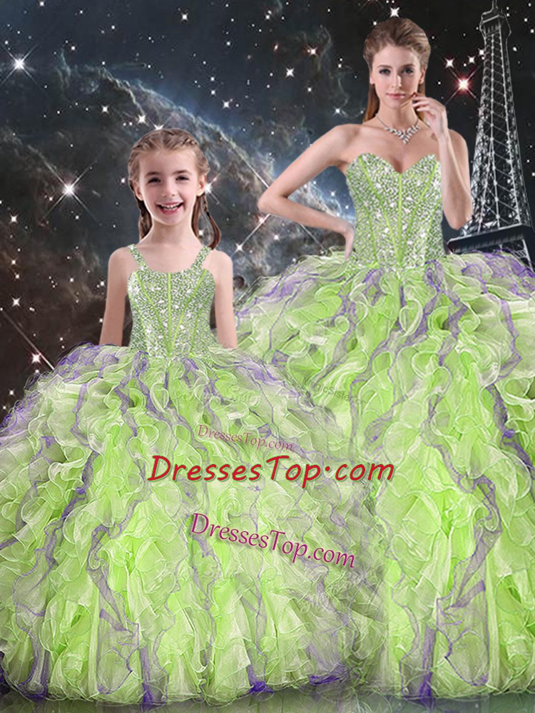 Yellow Green Ball Gowns Beading and Ruffles Vestidos de Quinceanera Lace Up Organza Sleeveless Floor Length