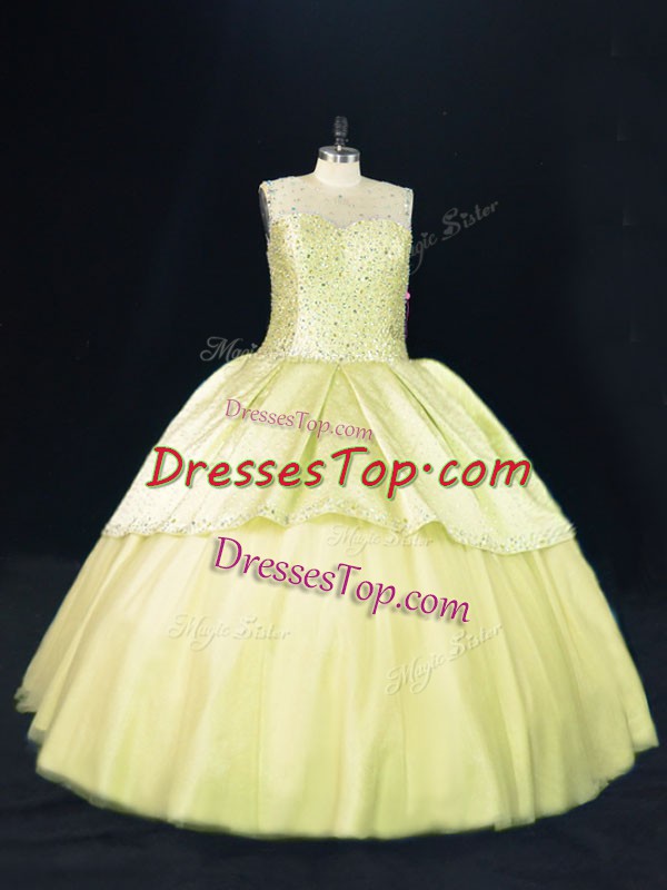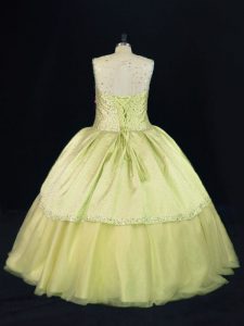 Yellow Green Ball Gowns Beading Sweet 16 Dresses Lace Up Tulle Sleeveless