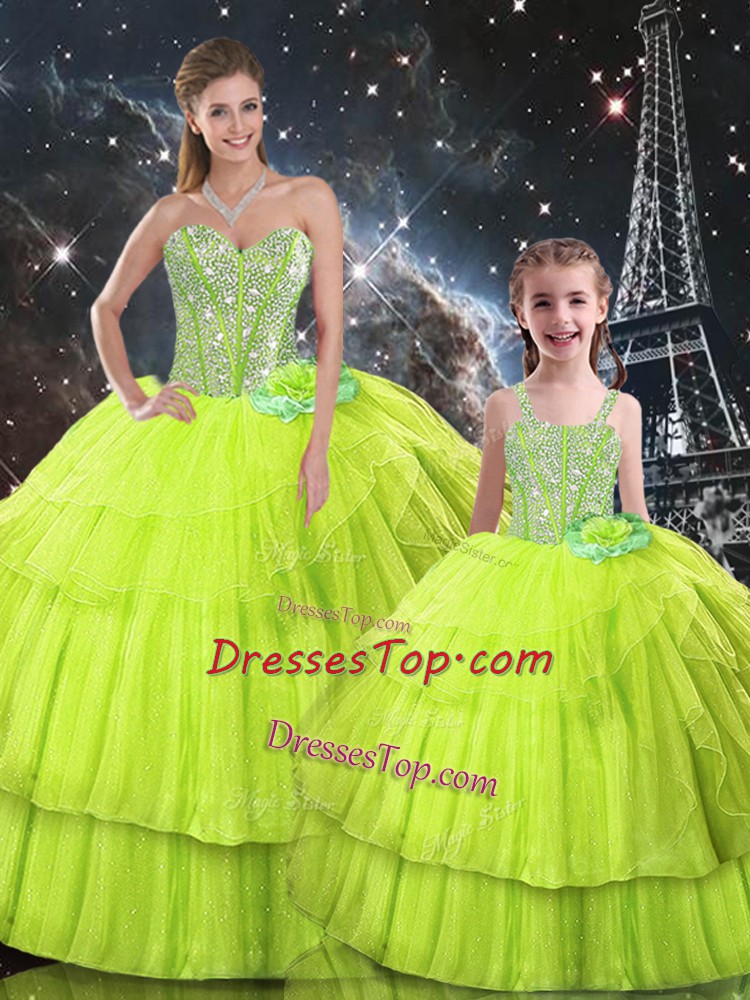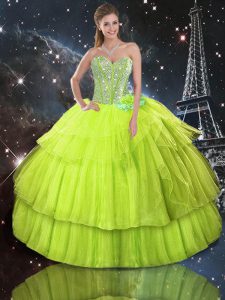 Yellow Green Ball Gowns Organza Sweetheart Sleeveless Ruffled Layers Floor Length Lace Up Quinceanera Dress