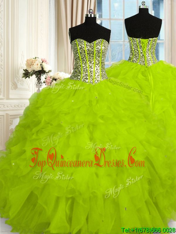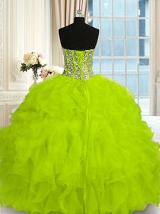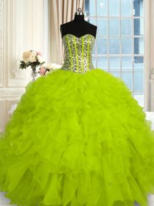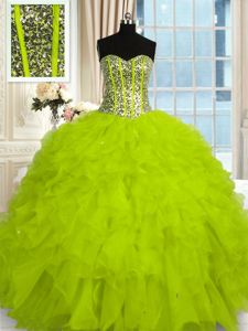 Yellow Green Ball Gowns Sweetheart Sleeveless Organza Floor Length Lace Up Beading and Ruffles Quinceanera Gowns