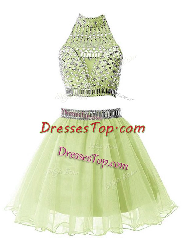 Yellow Green High-neck Zipper Beading Quinceanera Court Dresses Sleeveless