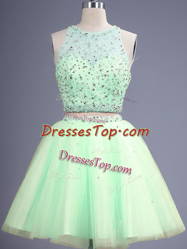 Yellow Green Lace Up Scoop Beading Court Dresses for Sweet 16 Tulle Sleeveless