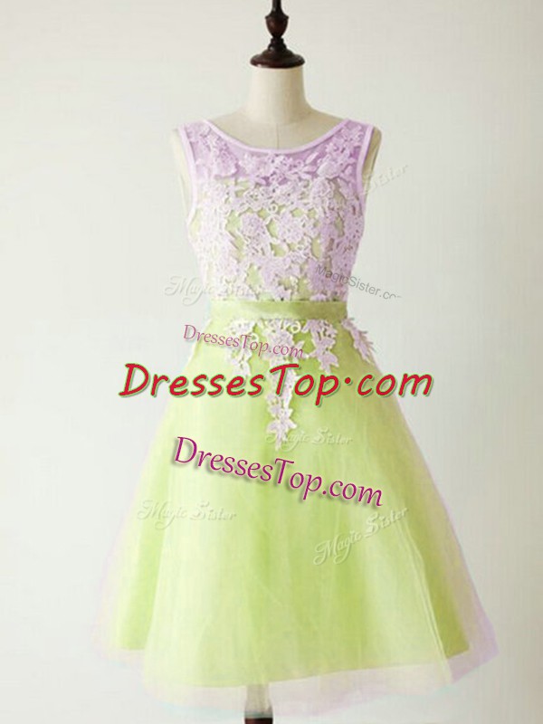 Yellow Green Lace Up Scoop Lace Quinceanera Court Dresses Tulle Sleeveless