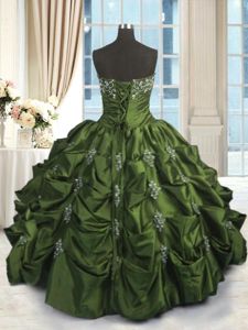 Yellow Green Lace Up Straps Beading and Embroidery and Ruffles Quinceanera Gowns Organza Sleeveless