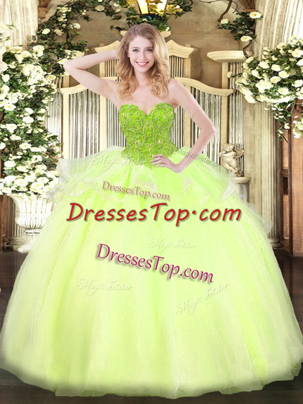 Yellow Green Lace Up Sweetheart Beading Sweet 16 Dress Organza Sleeveless