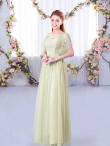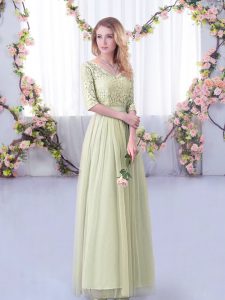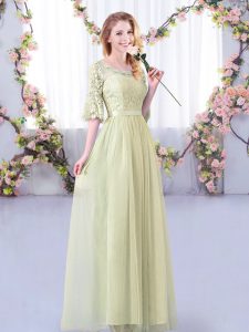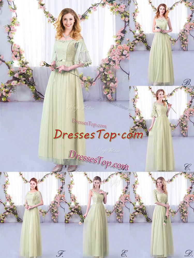 Yellow Green Off The Shoulder Neckline Lace and Belt Dama Dress for Quinceanera Half Sleeves Side Zipper