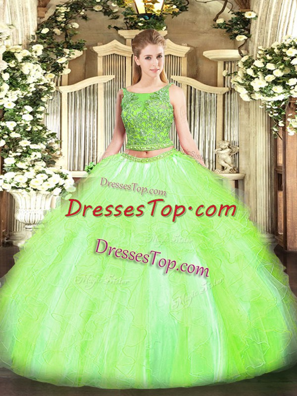 Yellow Green Quinceanera Gowns Military Ball and Sweet 16 and Quinceanera with Beading and Ruffles Scoop Sleeveless Lace Up