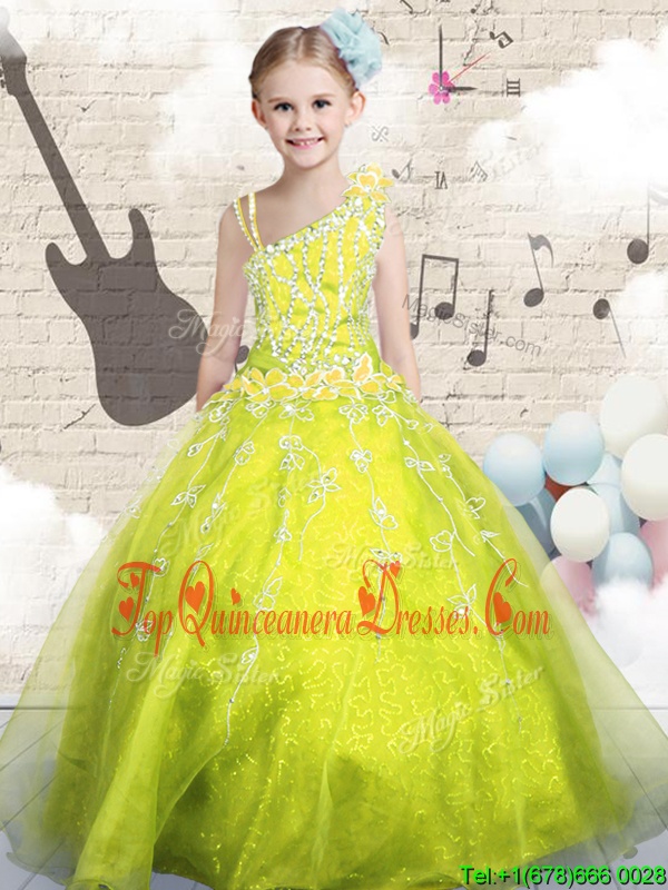 Yellow Green Sleeveless Organza Lace Up Glitz Pageant Dress for Party and Wedding Party