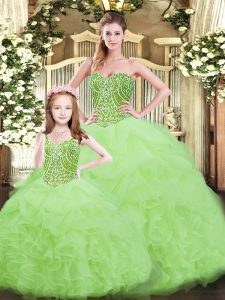Yellow Green Sleeveless Ruffles Floor Length 15th Birthday Dress