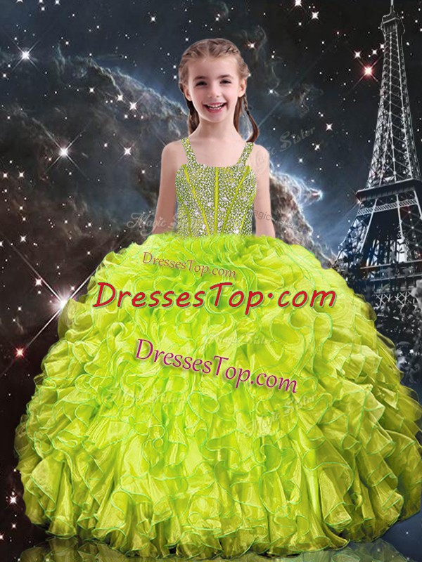 Yellow Green Straps Lace Up Beading and Ruffles Little Girls Pageant Dress Sleeveless