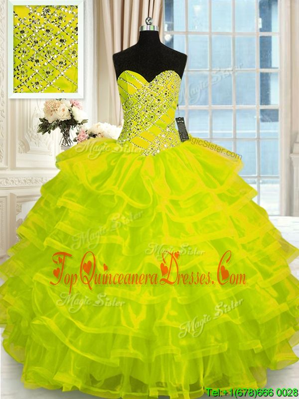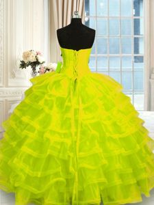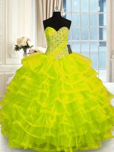 Yellow Green Sweetheart Neckline Beading and Ruffled Layers Sweet 16 Dress Sleeveless Lace Up
