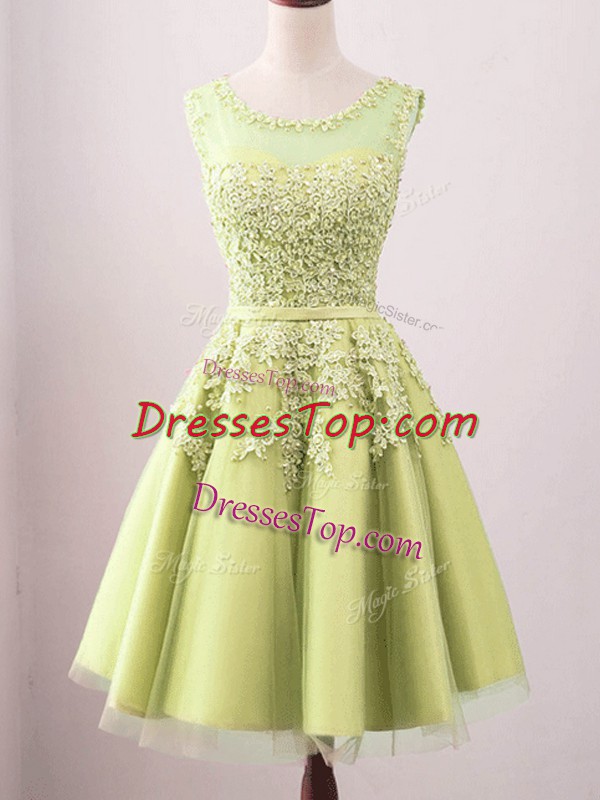 Yellow Lace Up Dama Dress for Quinceanera Lace Sleeveless Knee Length