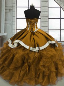 Yellow Sleeveless Floor Length Beading and Ruffles Lace Up 15 Quinceanera Dress