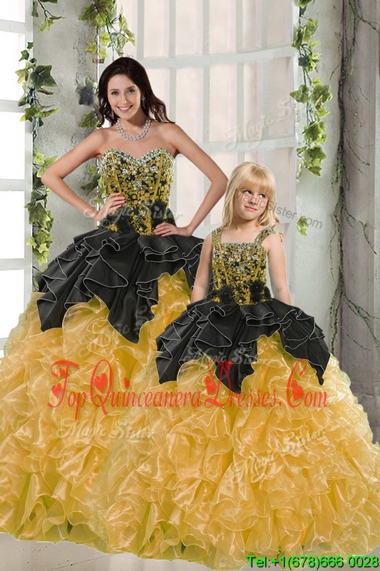 Yellow Sleeveless Floor Length Beading and Ruffles Lace Up Quinceanera Dresses
