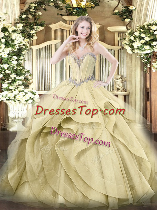 Yellow Sleeveless Tulle Lace Up Ball Gown Prom Dress for Military Ball and Sweet 16 and Quinceanera