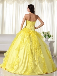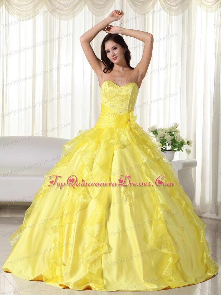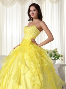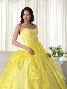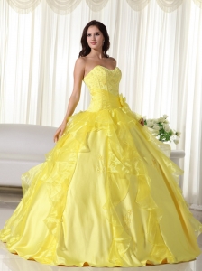 Yellow Sweetheart Taffeta Embroidery Quinceanera Dress