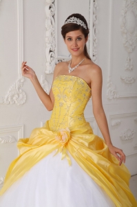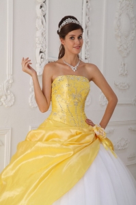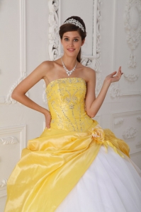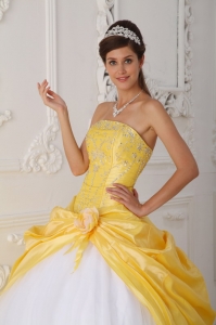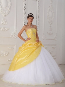Yellow White Sweet 16 Dress Organza Taffeta Appliques Strapless