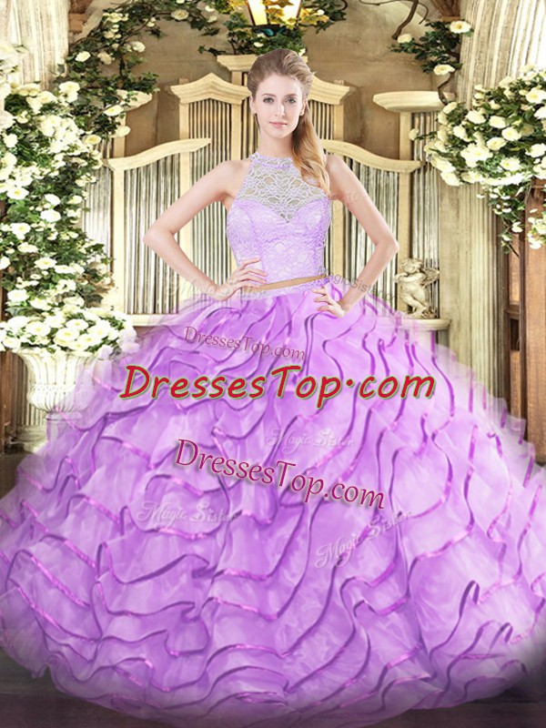 Zipper 15 Quinceanera Dress Lilac for Military Ball and Sweet 16 and Quinceanera with Lace and Ruffles Brush Train
