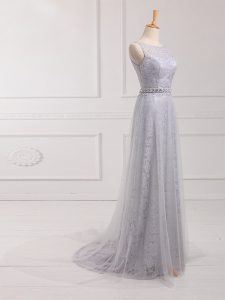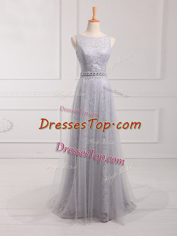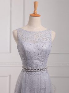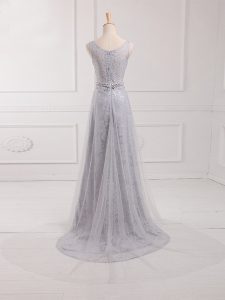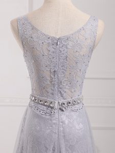 Zipper Quinceanera Dama Dress Grey for Prom and Party and Wedding Party with Beading and Lace Brush Train