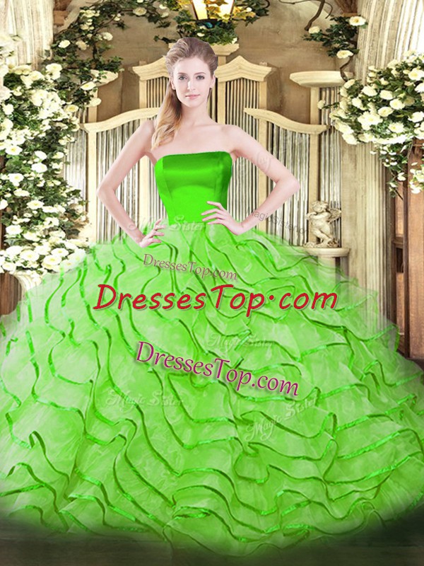 Zipper Quinceanera Dress for Military Ball and Sweet 16 and Quinceanera with Ruffles Brush Train