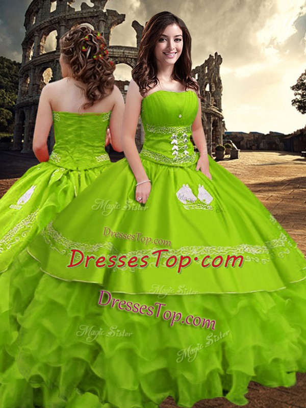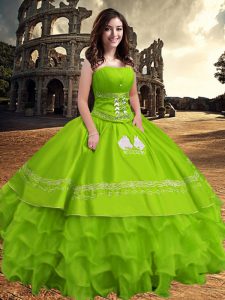 Zipper Sweet 16 Dresses Embroidery and Ruffled Layers Sleeveless Floor Length